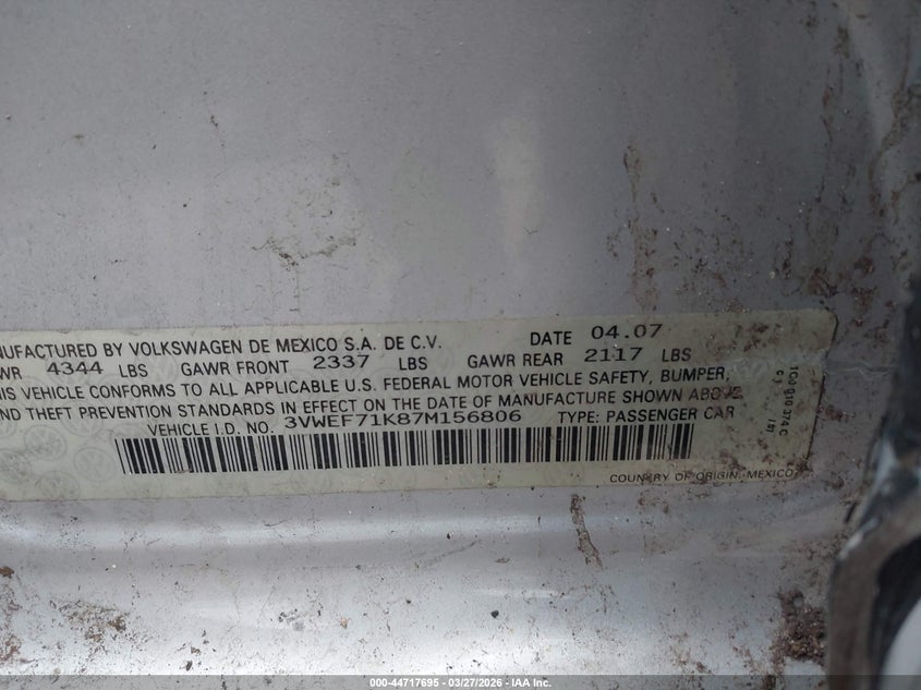 2007 VOLKSWAGEN JETTA WOLFSBURG EDITION for Sale in Appleton, WI