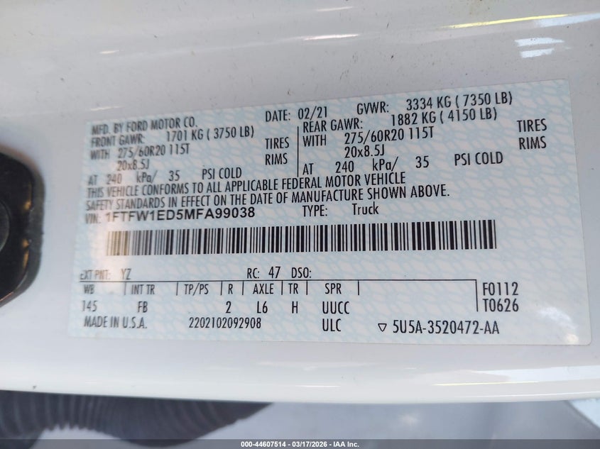 • 1FTFW1ED5MFA99038