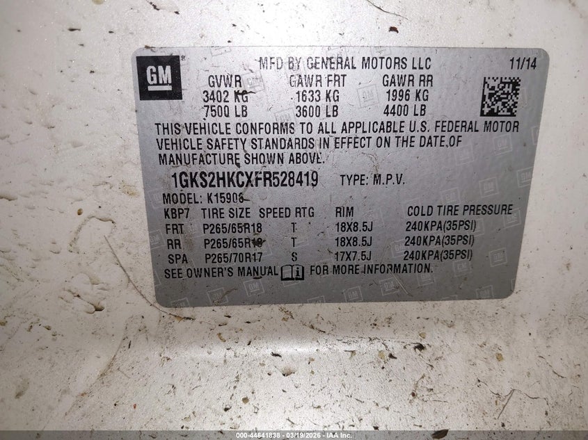• 1GKS2HKCXFR528419