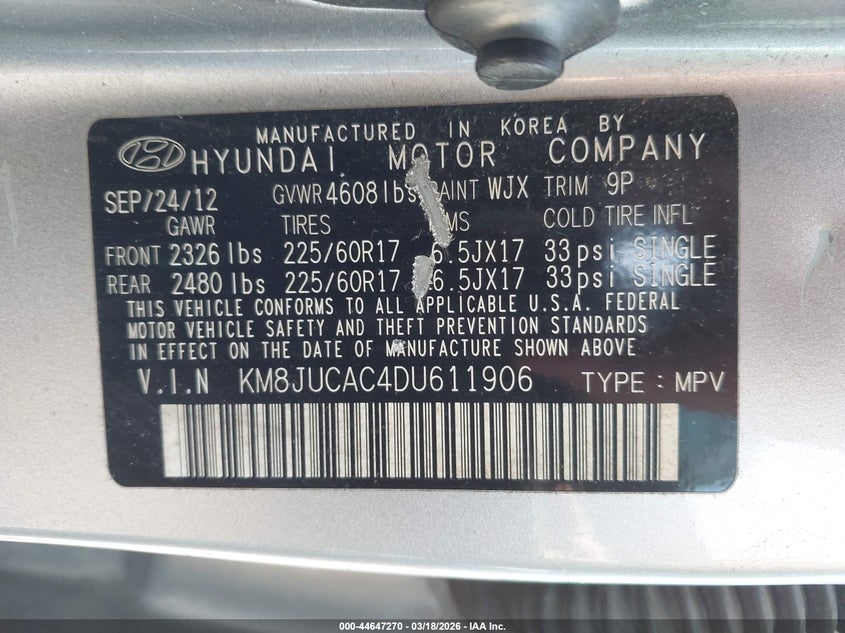 • KM8JUCAC4DU611906