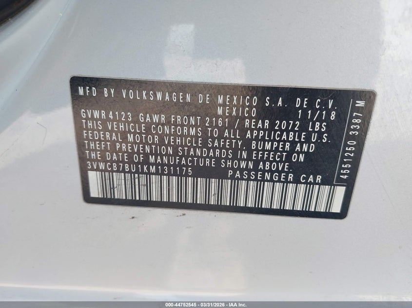 • 3VWCB7BU1KM131175