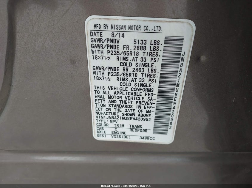 • JN8AZ1MU8EW420952