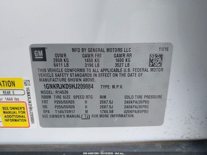 • 1GNKRJKD9HJ209884