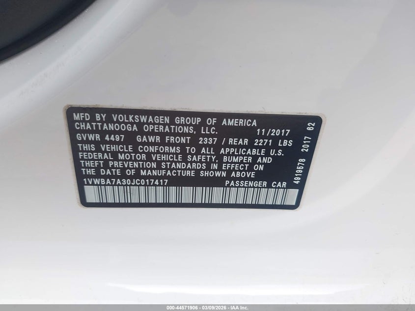 • 1VWBA7A30JC017417