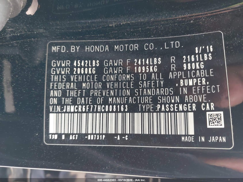 • JHMCR6F77HC008163