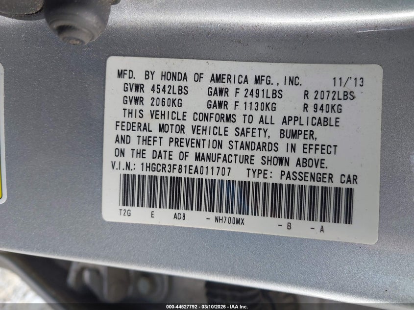 • 1HGCR3F81EA011707