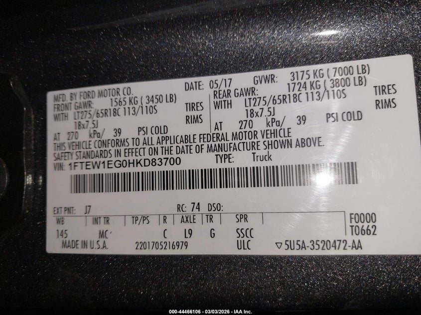 • 1FTEW1EG0HKD83700