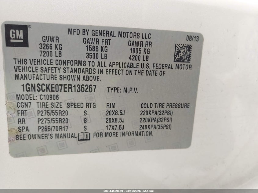 • 1GNSCKE07ER136267