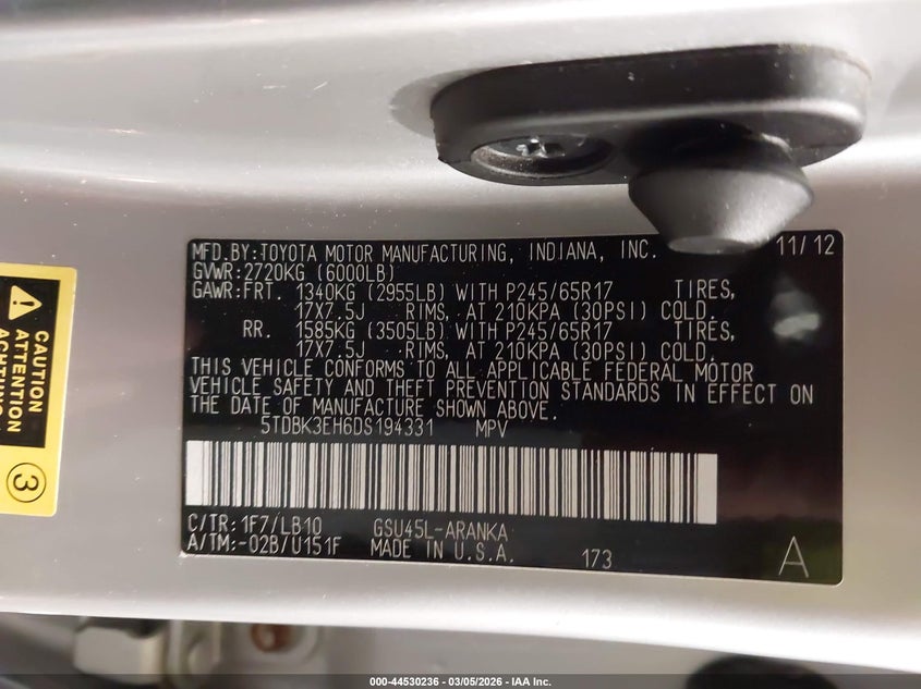 • 5TDBK3EH6DS194331