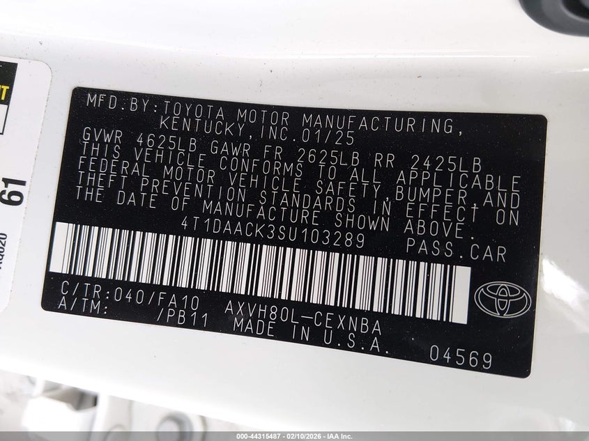 • 4T1DAACK3SU103289
