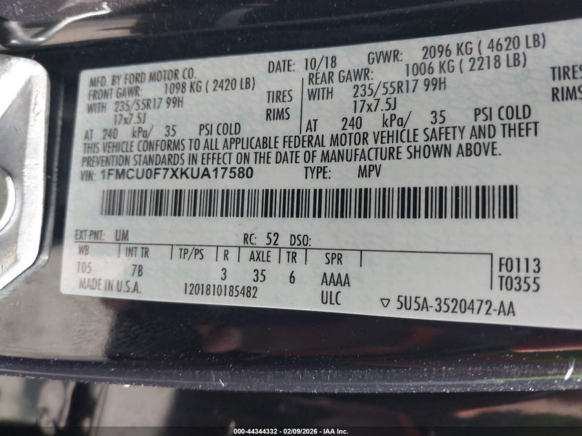 • 1FMCU0F7XKUA17580