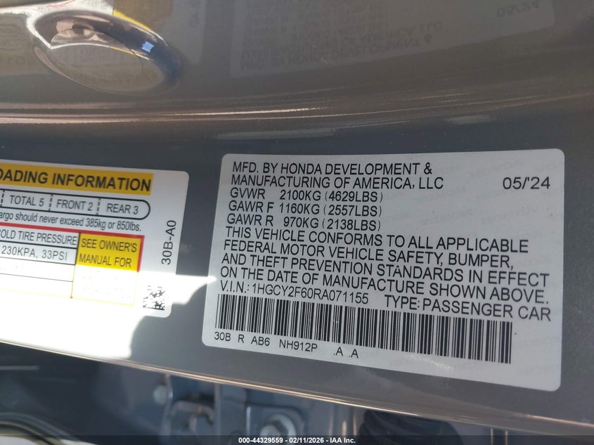 • 1HGCY2F60RA071155