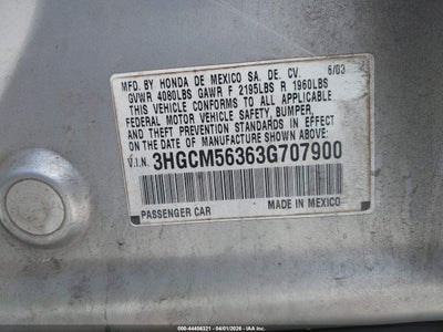 • 3HGCM56363G707900