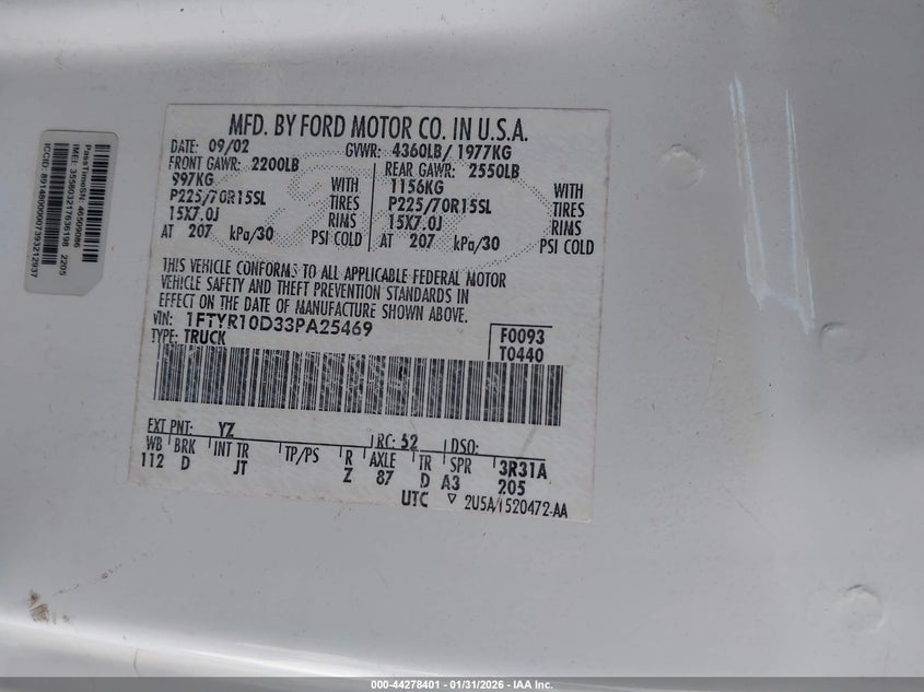• 1FTYR10D33PA25469