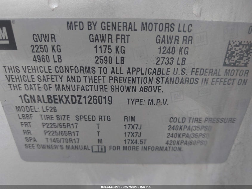 • 1GNALBEKXDZ126019