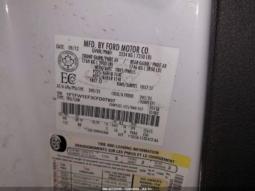 • 1FTFW1EF3CFD07997