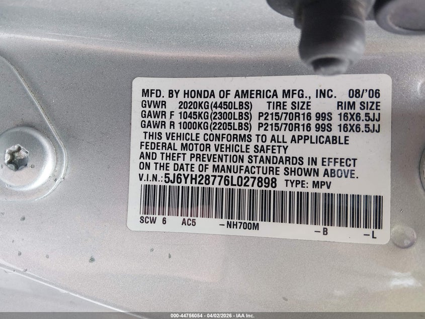 • 5J6YH28776L027898
