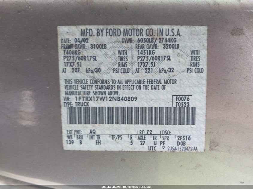 • 1FTRX17W12NB40809