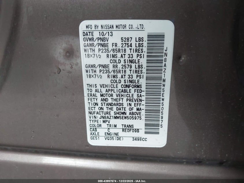 • JN8AZ1MW5EW505975