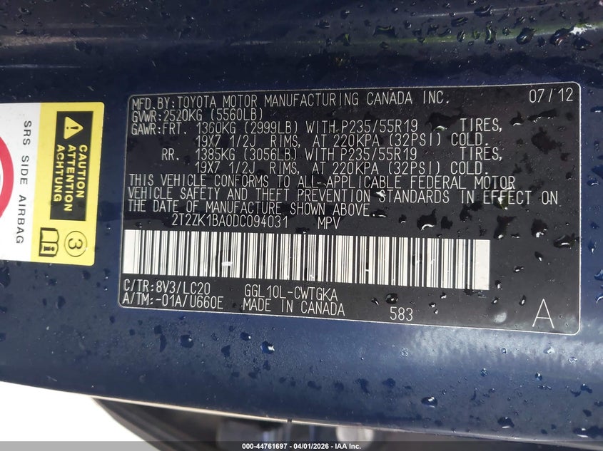 • 2T2ZK1BA0DC094031