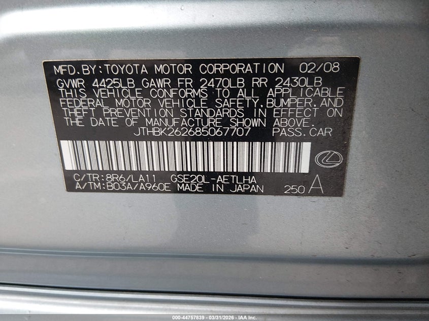 2008 LEXUS IS 250 for Sale in Gardena, CA