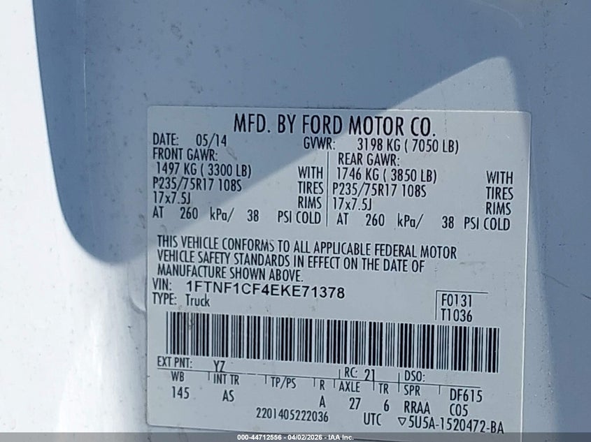 • 1FTNF1CF4EKE71378