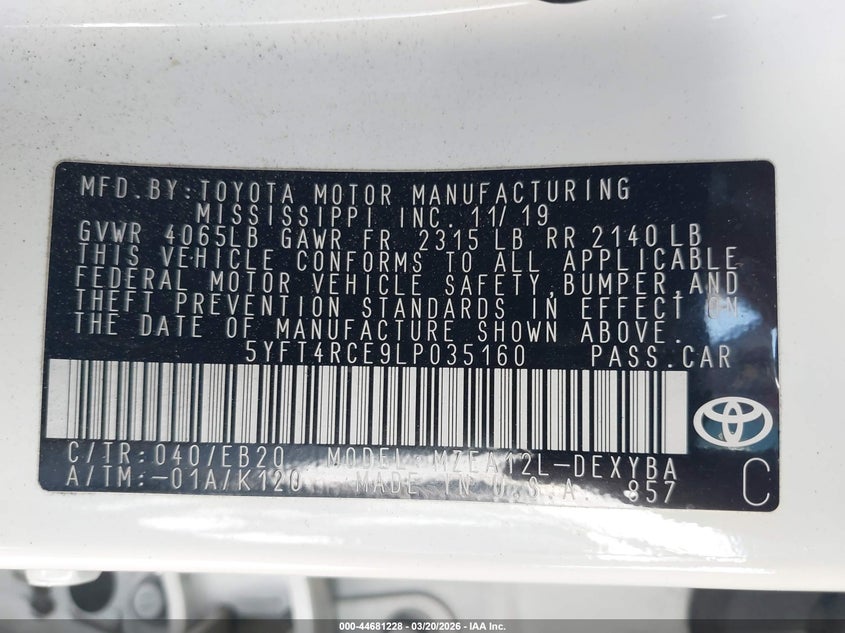 • 5YFT4RCE9LP035160