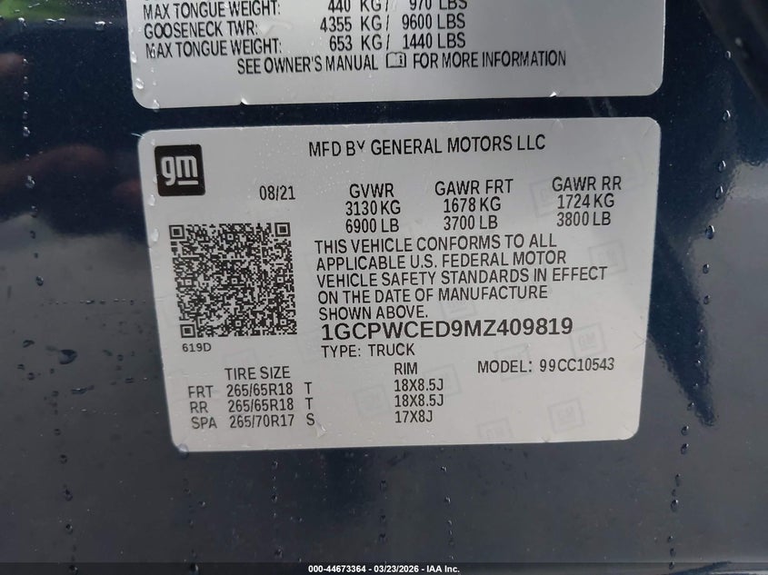 • 1GCPWCED9MZ409819