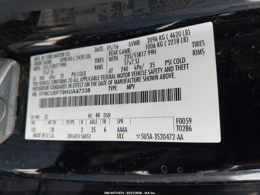 • 1FMCU0F79HUA47338