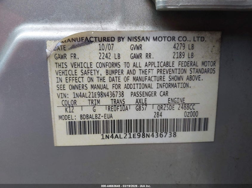 2008 NISSAN ALTIMA 2.5 S for Sale in Portland, OR