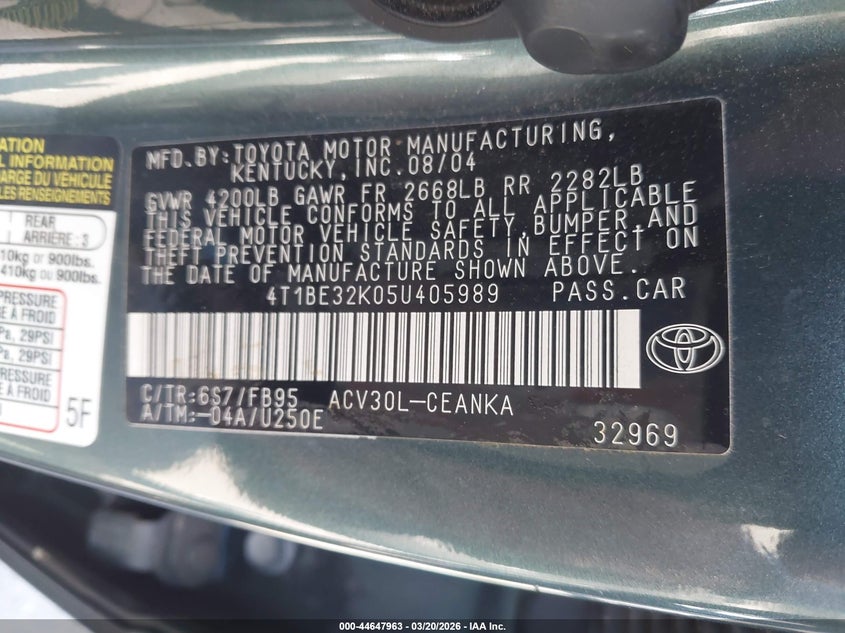 • 4T1BE32K05U405989