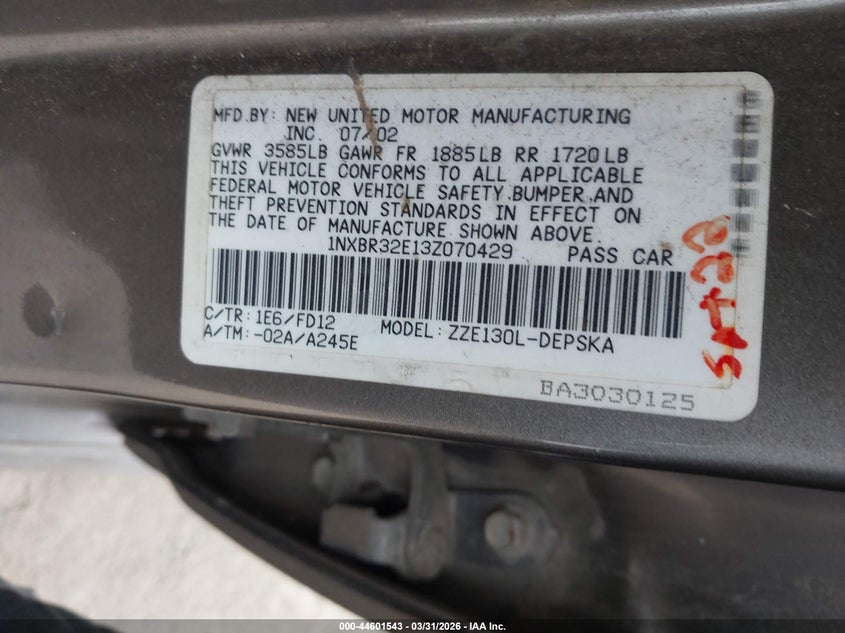 • 1NXBR32E13Z070429