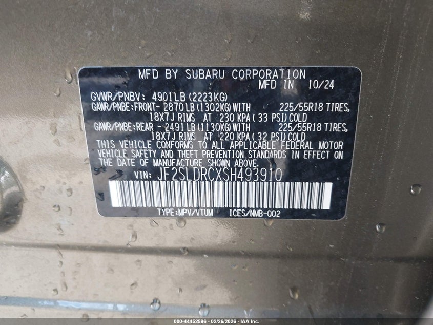• JF2SLDRCXSH493910