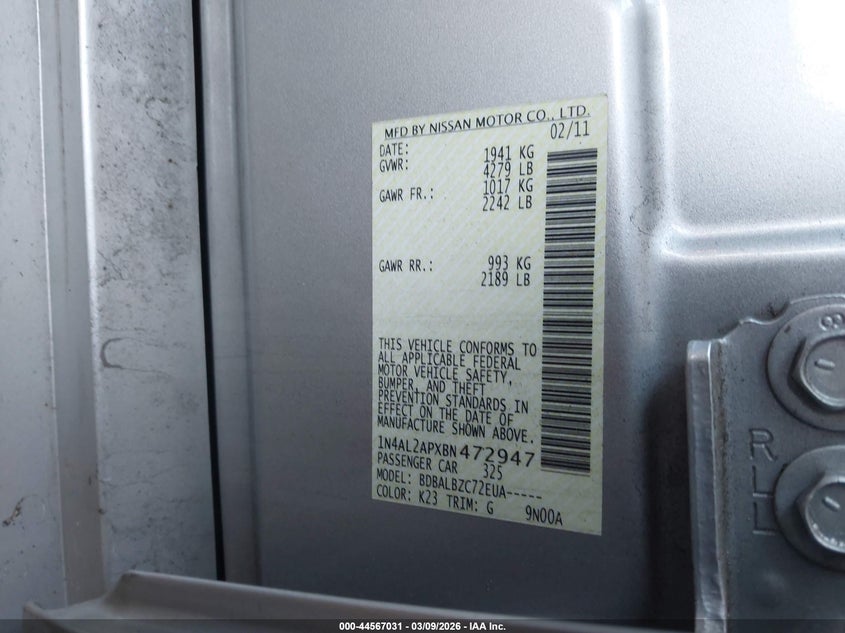 2011 NISSAN ALTIMA 2.5 S for Sale in Bay Point, CA