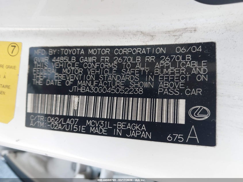• JTHBA30G045052238