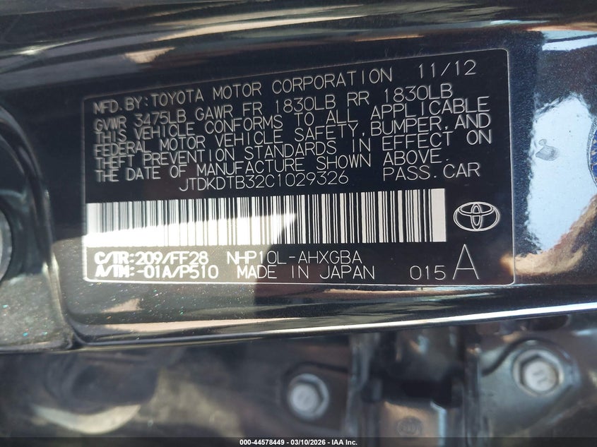 • JTDKDTB32C1029326