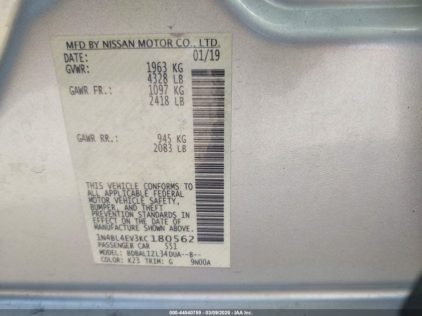 • 1N4BL4EV3KC180562