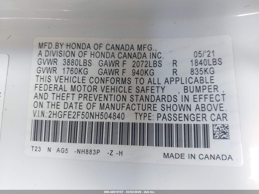 • 2HGFE2F50NH504840