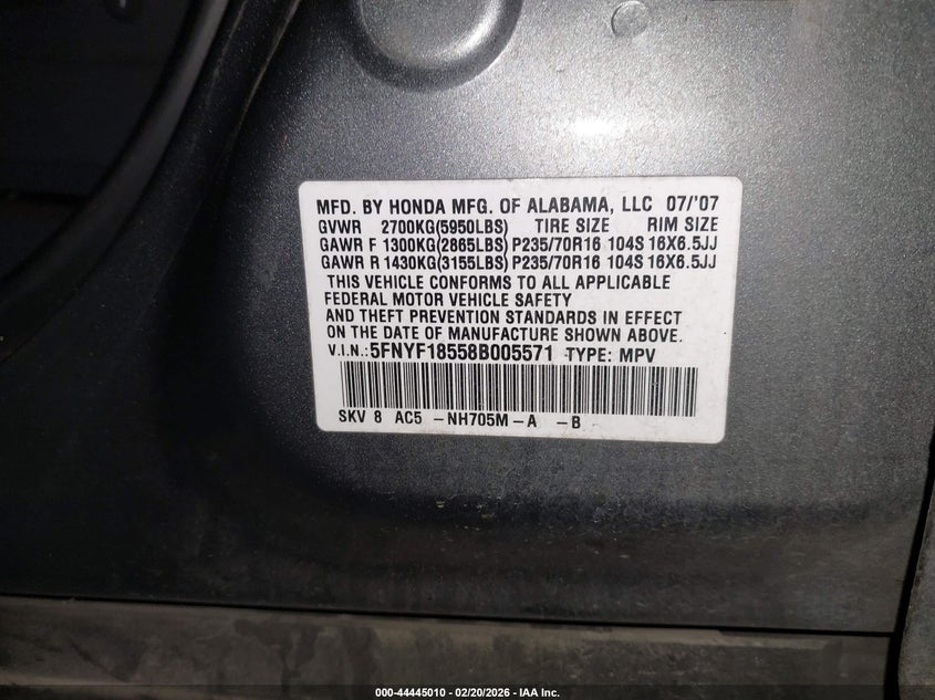• 5FNYF18558B005571