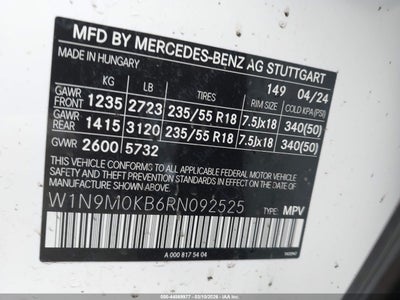 2024 MERCEDES-BENZ EQB 300 SUV 4MATIC for Sale in Electric Vehicle Auctions, None