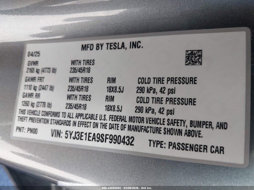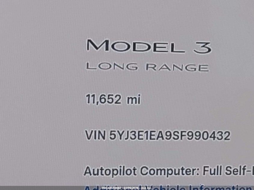 2025 TESLA MODEL 3 for Sale in Electric Vehicle Auctions, None