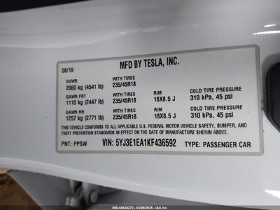 2019 TESLA MODEL 3 LONG RANGE/MID RANGE/STANDARD RANGE/STANDARD RANGE PLUS for Sale in Electric Vehicle Auctions, None