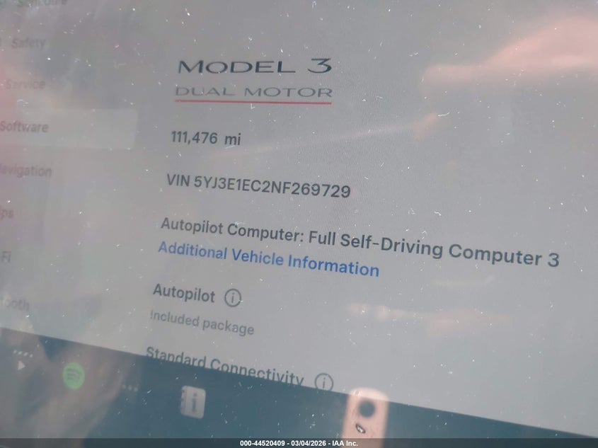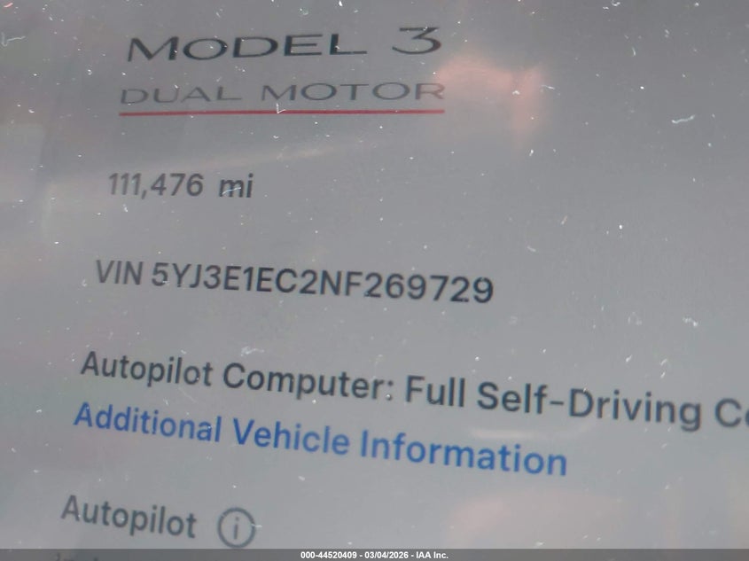 2022 TESLA MODEL 3 PERFORMANCE DUAL MOTOR ALL-WHEEL DRIVE for Sale in Electric Vehicle Auctions, None
