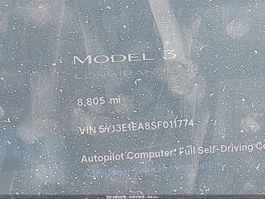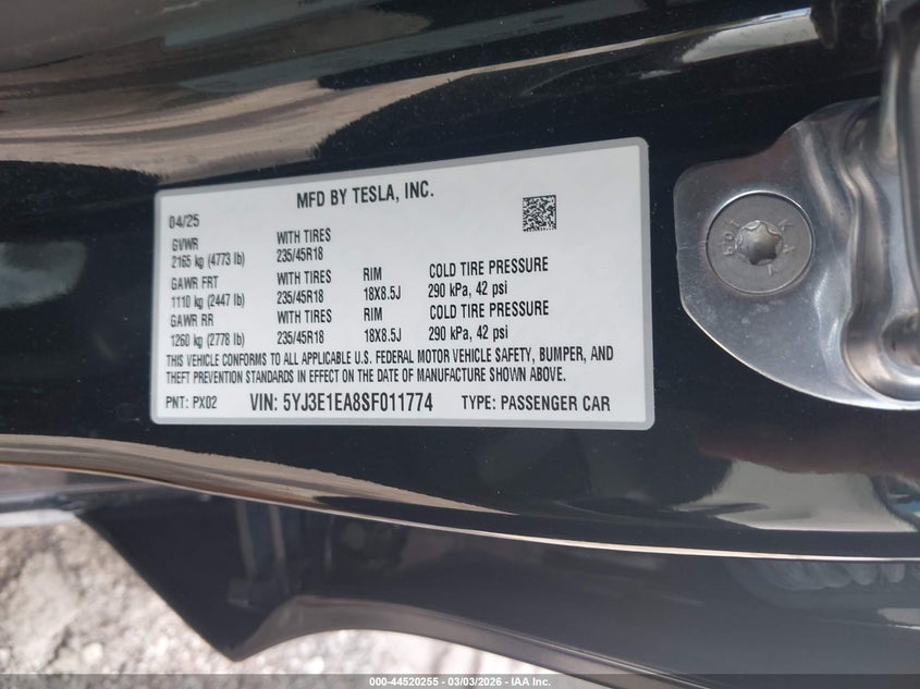 2025 TESLA MODEL 3 LONG RANGE REAR-WHEEL DRIVE/STANDARD REAR-WHEEL DRIVE for Sale in Electric Vehicle Auctions, None