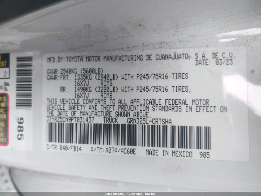 • 3TYRZ5CN9PT031437