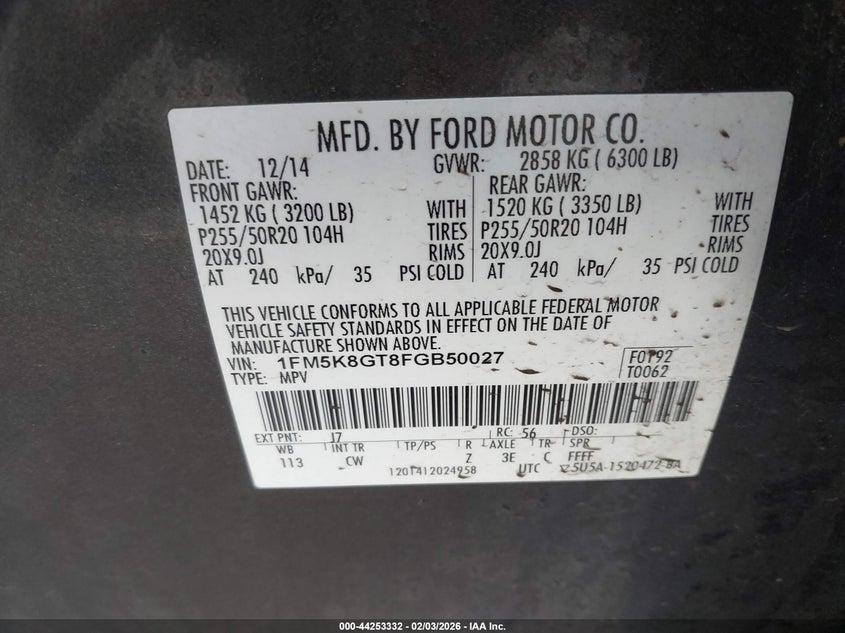 • 1FM5K8GT8FGB50027