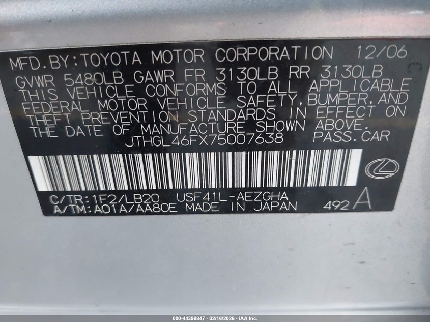 • JTHGL46FX75007638
