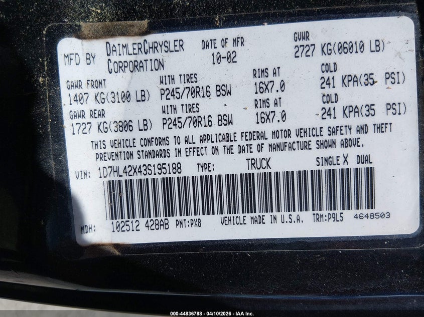 • 1D7HL42X43S195188