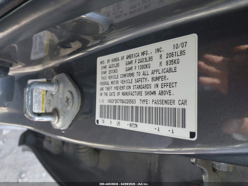 • 1HGCP26778A026563