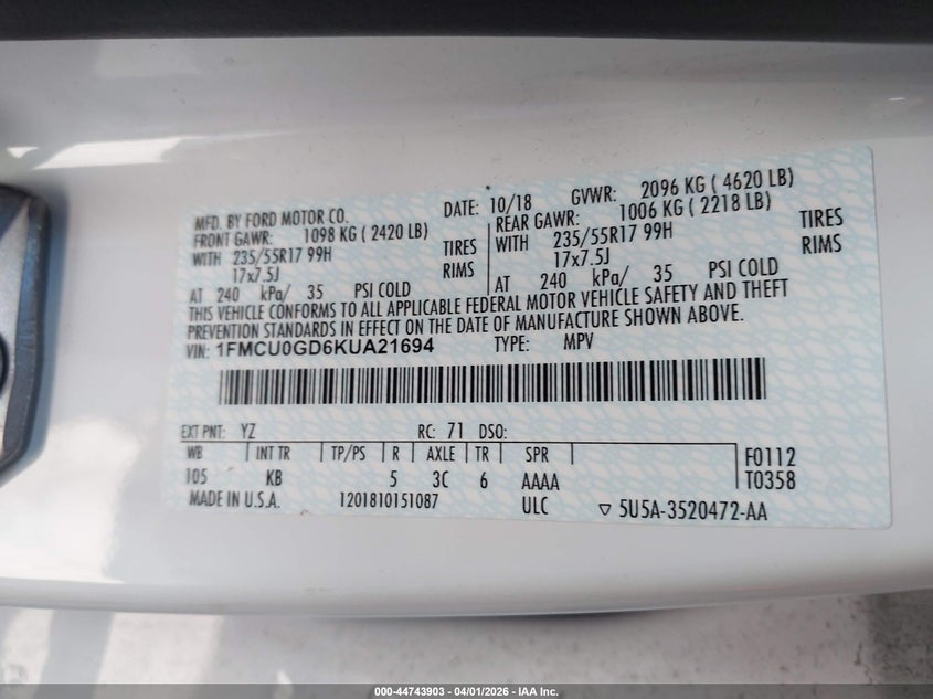• 1FMCU0GD6KUA21694